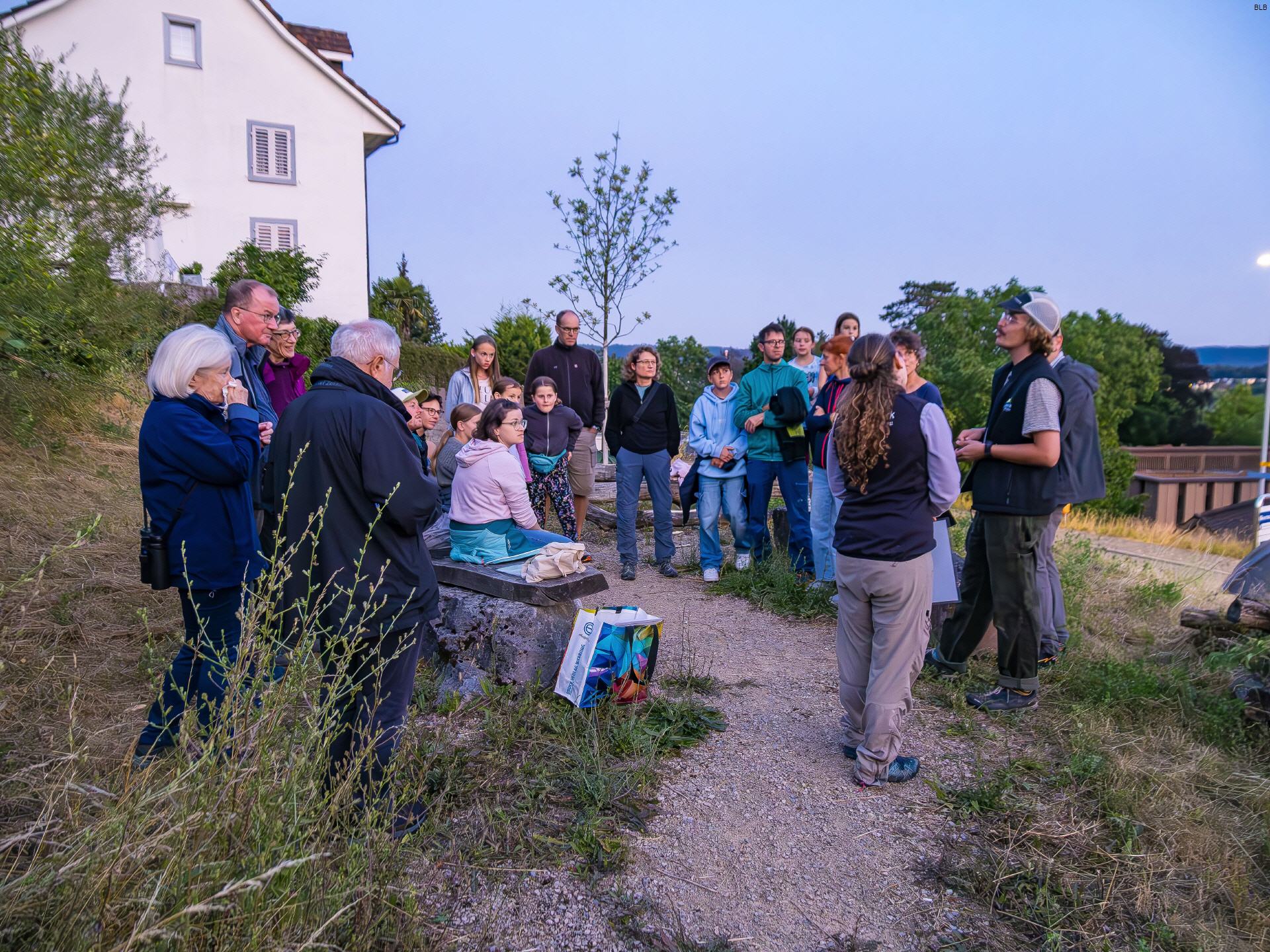Bei leichtem Regen fanden sich 14 Erwachsene und 2 Kinder beim Treffpunkt ein. Mathias Romer erklärte die gegenwärtige Politik in der Waldnutzung und die biologische Vielfalt um einheimische Bäume wie Eichen und Elsbeeren im Vergleich zu ortsfremden Bäumen wie z. B. Douglasien. Ebenso vielfältig zeigte sich das Leben im Totholz, wo Käfer und verschiedene Pilzarten die Zersetzung der Bäume einleiten. Am Waldrand der «Langmatt» erhielten wir einen Überblick über ein Waldreservat im «Etzget» zwischen Küttigen und Biberstein, das 50 Jahre nicht genutzt werden darf. Auf dem Rückweg zum Dorf sangen die Frösche im Teich und im Bach fanden wir Larven des Feuersalamanders. Herzlichen Dank für den lehrreichen, schönen Abend!